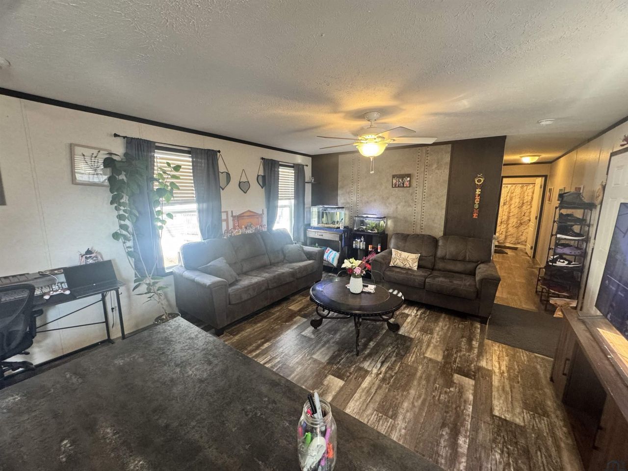 Living: Wood vinyl flooring, ceiling fan, open floor plan